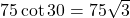 Two cars are seen from the top of a tower of height 75 m with angles of depression 30° and 45°. If the cars are on opposite sides of the tower along the same line, the distance between them is: