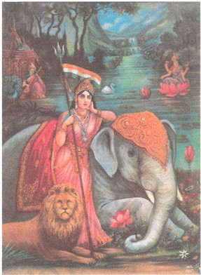3)Look at the picture given below.What does the image of Bharat Mata signify? Choose the correct option: