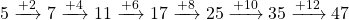4, 9, 25 ……..?………… 121, 169, 289, 361