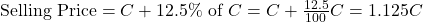 – Ram gained 12.5% on the cost price. The selling price is therefore 112.5% of the cost price: