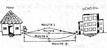 29. In the below figure, by which route Chota Bheem reaches school faster?